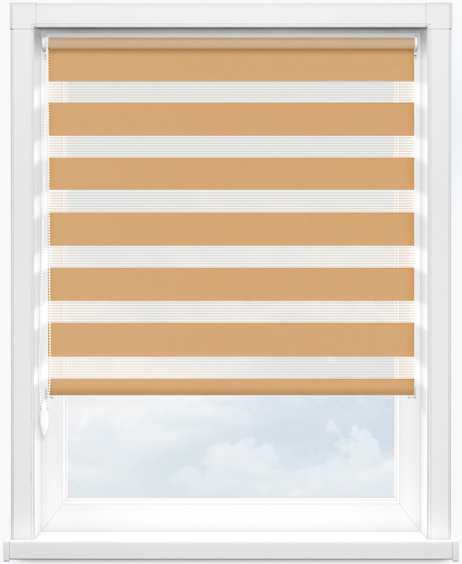 Le tende della zebra sono trasformate di piccolo pezzo di tessuto e di garza della larghezza uguale tessuta ad intervalli un tessuto, che è riparato ad un'estremità ed ha rotolato con l'asse all'altra estremità ai fini di luce di regolamento. La luce è più molle quando la garza e la sovrapposizione della garza, riducente la luce diretta fino ad un certo punto.